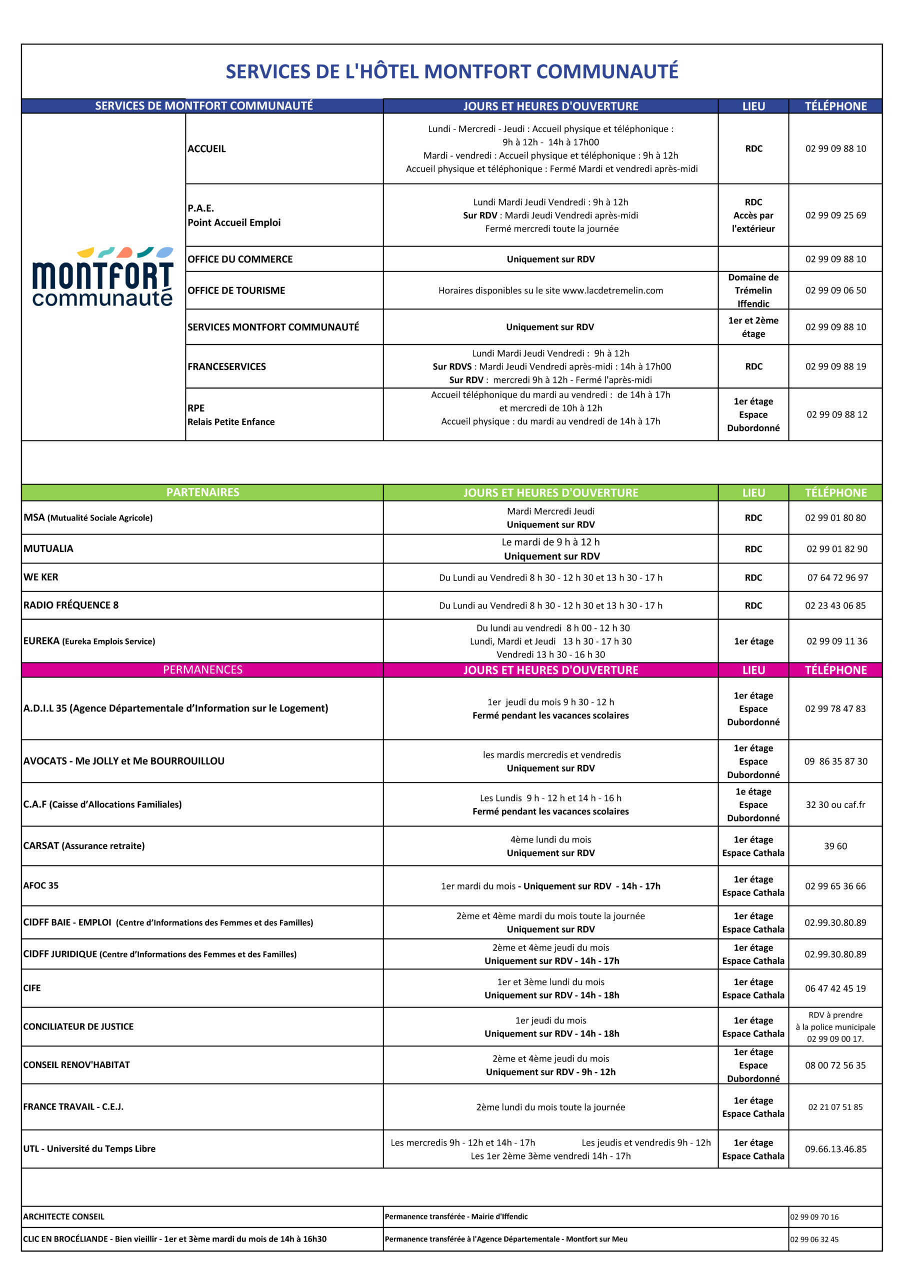 Les locaux de Montfort Communauté accueillent de nombreux services partenaires (MSA, Carsat, WeKer…).
